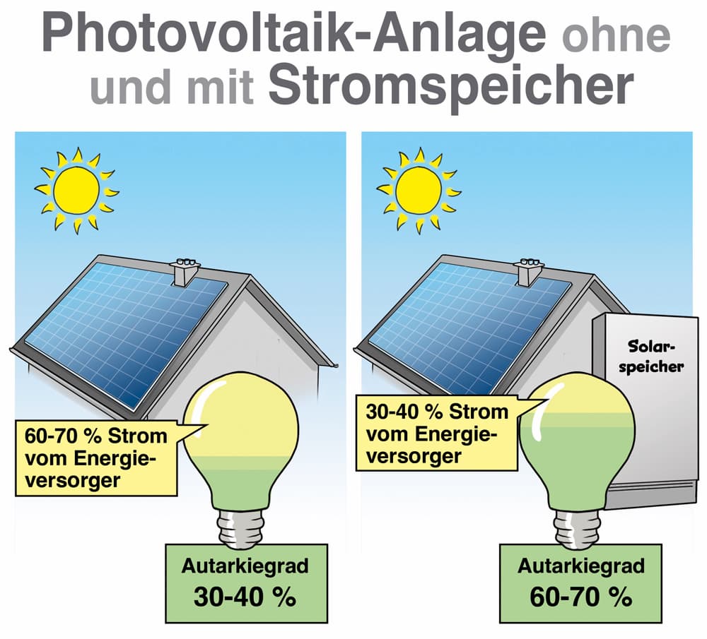 Mit einem passenden Batteriespeicher steigt dieser Wert auf 60 bis 80 Prozent. Je mehr Strom du selbst verbrauchst, desto schneller rechnet sich die Anlage.