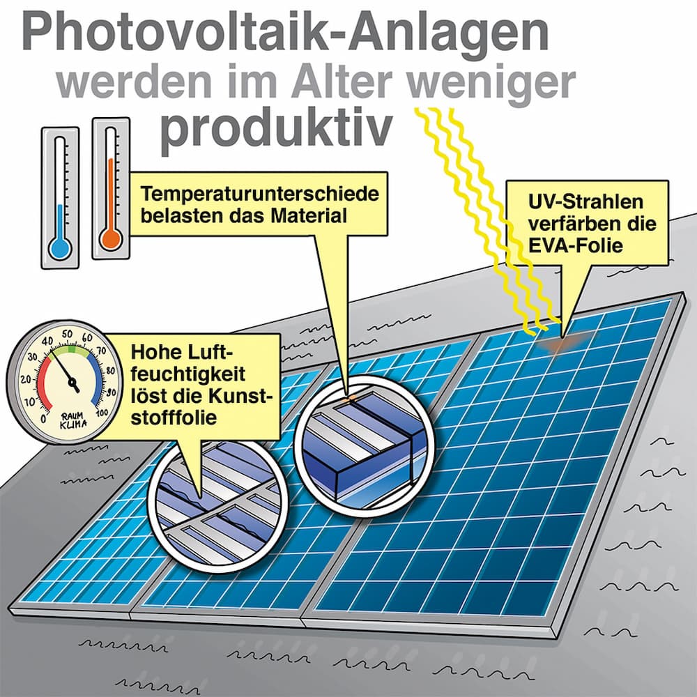 unterliegen einer natürlichen Degradation: Die Herstellergarantie sichert typischerweise 90% Leistung nach 10 Jahren und 80% nach 20 Jahren.