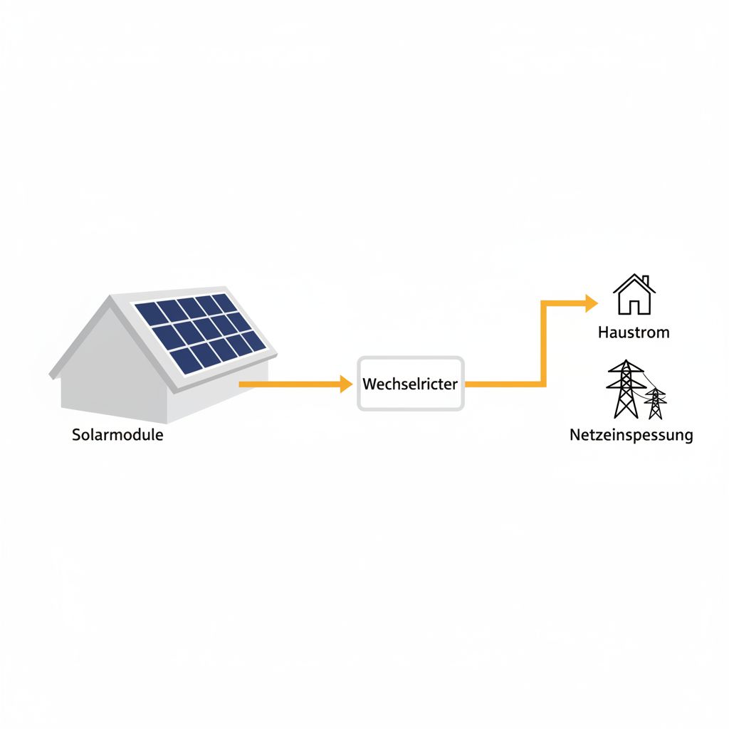 Diese Solarzellen nehmen das Sonnenlicht auf und erzeugen daraus Gleichstrom. Da dein Haushalt jedoch mit 230 Volt Wechselstrom arbeitet, kommt ein Wechselrichter ins Spiel.